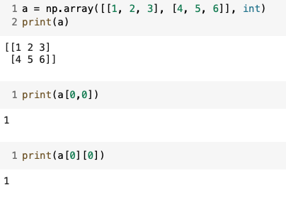 : 리스트와 달리 이차원 배열에서 [0,0]과 같은 표기법을 제공