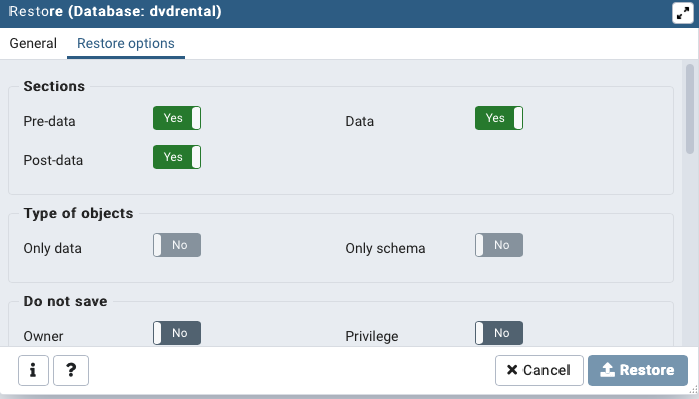 3. pgAdmin 이용해 Sample DB (dvdrental) 로드하기 - Restore the Databases