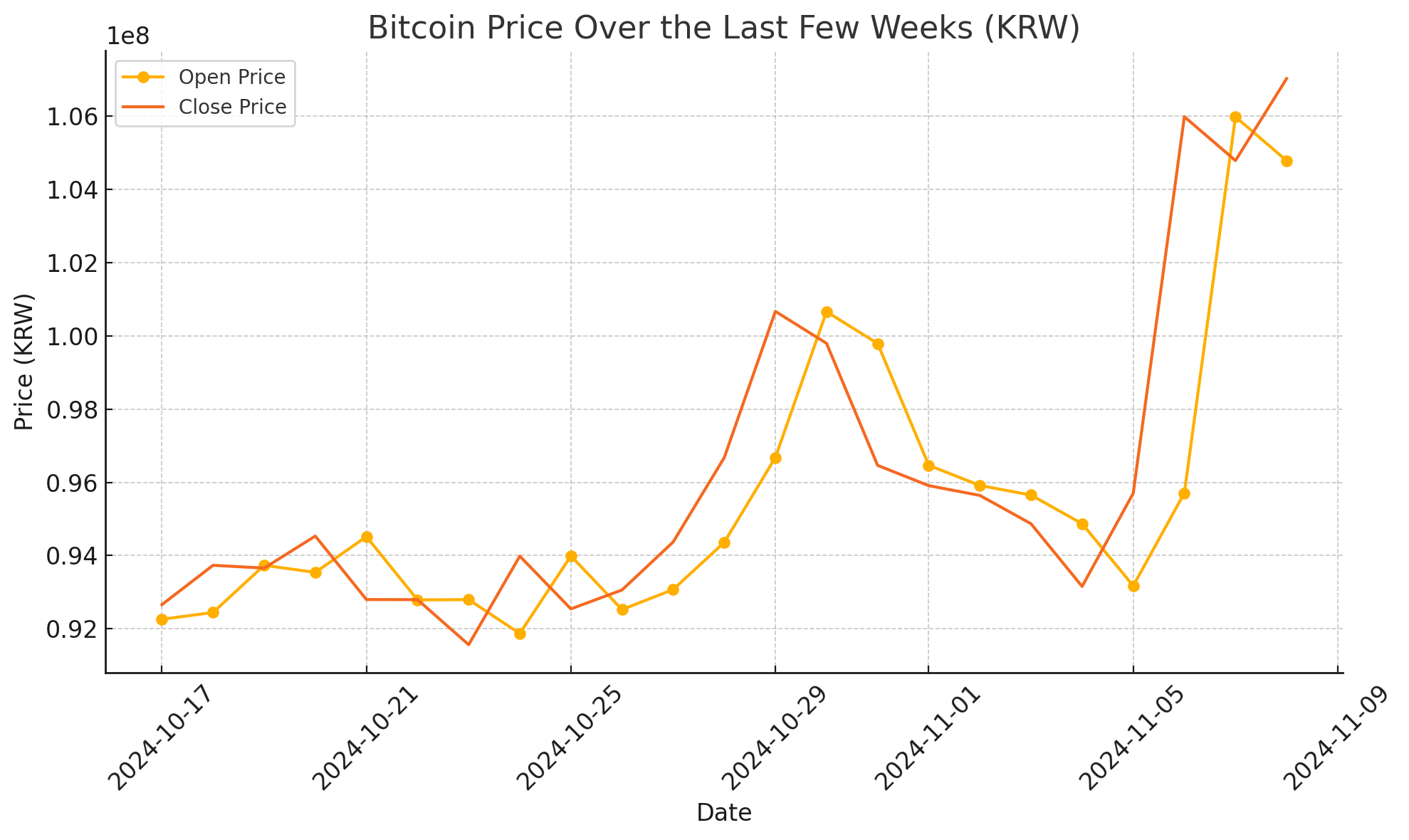 - 2023년 11월: 미국 연방준비제도의 금리 인하 기대감과 기관 투자자의 지속적인 관심으로 가격 다시 상승세, 60,000달러를 돌파